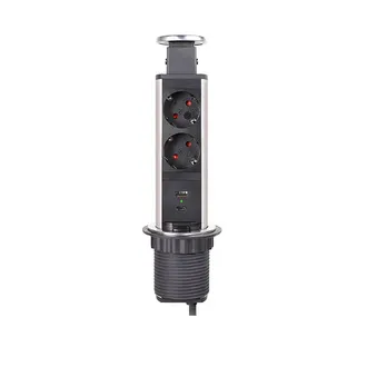 Выдвижная розетка вертикальная, на 2 EURO розетки, 2 USB A+C, нержавеющая сталь