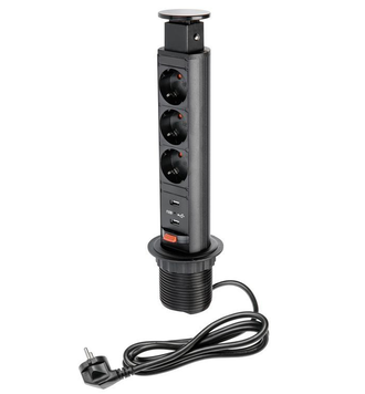 Выдвижной блок розеток GTV AE-BPW3S60U-20, на 3 розетки, 2 USB